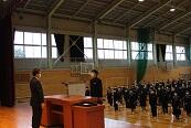 地区中総体陸上競技などの表彰の後に,朝会を行いました。朝会では校長より,「夢」と「志」の違いについての講話があり,皆真剣に耳を傾けていました。