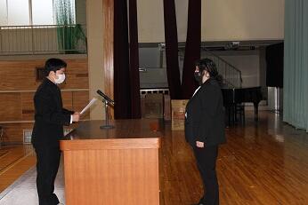 緑光会副会長の朝の挨拶で朝会を始めました。先日に実施された大会の表彰も行いました。