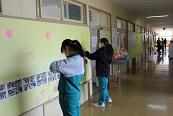この看板には、美術部員の「全校生徒が協力し合い、充実した学校生活を送れるように」という願いも込められています。