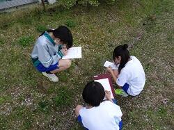 生徒は興味を持った草花や昆虫をルーペ観察しながらスケッチしていました。