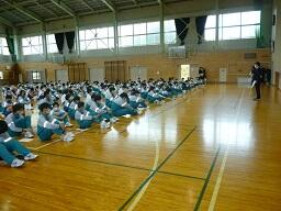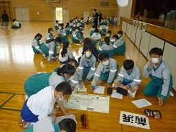 先週金曜日に地区生徒会を体育館で行いました。地区ごとに集まり,110番の家や地区の危険箇所を確認しました。