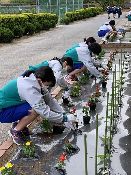 6月18日(木)整備委員会の活動で,学校花壇の植栽をしました。
