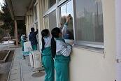 生徒会役員の発案によって,全学年を縦割りのグループにして,普段できない箇所を重点的に清掃する“大掃除集会”を実施しました。3年生を中心に,1・2年生も協力して,環境美化に取り組みました。おかげで,卒業式を前に隅々まできれいになりました。