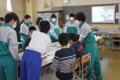 27日(木),来年度入学予定の松岩小学校の6年生が部活動の体験にやって来ました。2年生の各部長の案内で中学校の部活動の雰囲気を味わっていました。