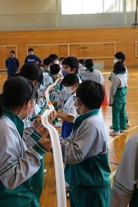午前中に東日本大震災遺構・伝承館に出かけ,語り部の方からお話をしていただき,防災についての知識を深めることができました。学校にもどった午後は,学級・学年の輪を広げるため,MAP体験に取り組みました。普段の教室の授業では経験できない,貴重な学びの一日となりました。