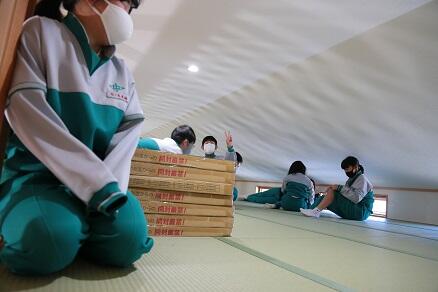 9時のサイレンから,地区ごとに,徒歩での避難を行ったり,危険箇所を確認したり,サバイバル飯(サバ飯)をつくったり,段ボールトイレの作成の説明を聞いたり,災害用備蓄倉庫の点検を行ったり,自治会館のロフトでの体験を行ったりなどしました。