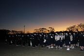 朝焼けの中,出発式を行い,3年生が修学旅行に出発です!!
