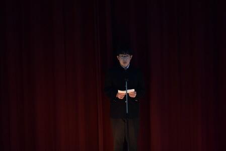 文化祭実行委員長から最優秀賞の3年1組へ賞状の伝達