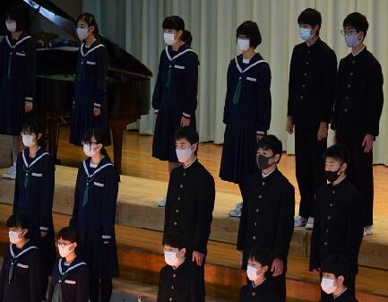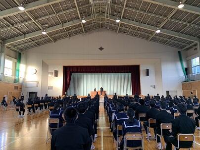 校長先生から,「コロナ禍で大きな行事を行ってきた生徒の皆さんを誇りに思います」「これからも本気でいきましょう」と励ましの言葉をいただきました。