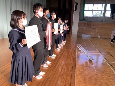文化祭の賞状伝達,生徒会任命式・引継式を行いました