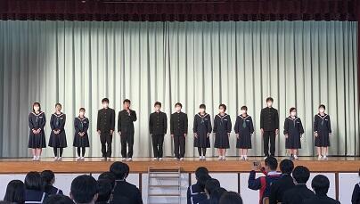 続いて,緑光会(生徒会)の新執行部,後期専門委員の任命式と引継式を行いました。