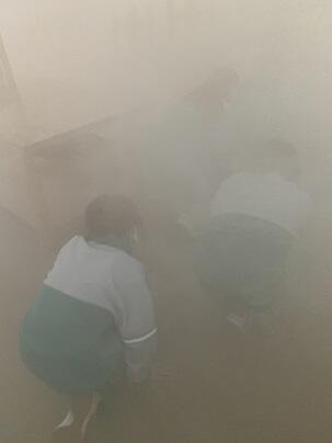 その後,消火器を使った初期消火訓練,煙道体験を行いました。