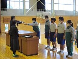 放課後に生徒会(緑光会)の任命式を行いました。あわせて,旧生徒会長から新生徒会長に緑光会旗が引き継がれました。