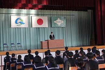 79日間に及んだ2学期が本日終了しました。各学年代表生徒が79日間をふり返り,3学期の抱負を発表しました。