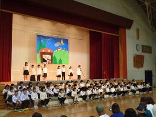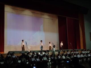 ・今日の児童集会は、運動委員会の担当でした。運動委員会の活動の様子を校内放送で全校に紹介しました。