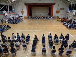 ・いつもは話し声が聞こえないのですが、今回は、東昇降口から避難した学年から話し声が聞こえたのがちょっと残念でした。消防署の方からは、概ね立派な避難だったというお話をいただきました。