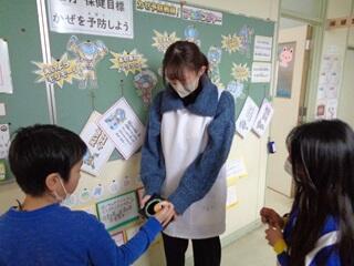 ・今日から教育実習が始まりました。今年度、二人目の受け入れです。今回は、1年生で実習を行います。1年生の子供たちは、先生が一人増えたと大喜びです。給食時間に校内放送で全校に紹介しました。