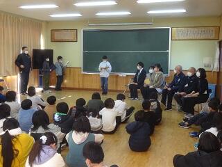 ・廊下や校舎前のコンクリートの疾走によるけが,教室内でふざけて遊んでいた時のけがなど,具体的な例を挙げながら説明しました。「この後どうなるか?」と子供たちに疑問を投げ掛け,考えさせる場面もありました。
