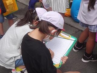 ・長い距離を歩く地区もあり,熱中症も心配されるので,日陰で水分補給のための休憩を取りながら行いました。