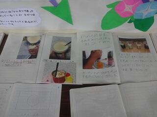・5年生の子供たちは,調理実習を行いました。ご飯と味噌汁の実習です。ご飯は,耐熱ガラスの透明容器で炊き上がる様子を見ながら炊きました。味噌汁は,煮干しでだしを取ったわかめの味噌汁を作りました。