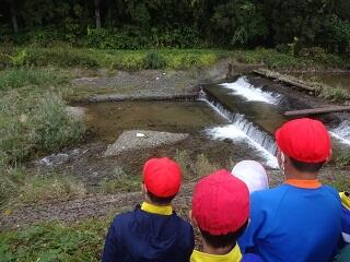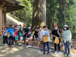 ・花山自然の家に到着しました。到着後は、荷物を置き、すぐにウォークラリです。グループごとに地図を見ながら、問題を解きました。道に迷ったグループもありましたが、無事、すべてのグループがゴールできました。「気を付けてね」「大丈夫」「こっち歩いたほういいよ」などなど、互いに声を掛け合いながら活動していました。森の中は涼しくて気持ちの良いところもありました。昼食は、グループごとにおうちから持ってきたおにぎり等を食べました。