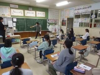 ・3時間目には,校長先生が6年生の子供たちに授業を行いました。相田みつをさんの詩を用いながら,人は「見えるところ,見えないところでたくさん支えられていること」,だから「ありがとうの気持ちを忘れずに生活してほしいこと」,そして「見えないところに気が付く人に,見えないところでも頑張れる人になってほしい」という思いを伝えていました。子供たちは,友達と考えを交流しながら学びを深めていました。