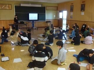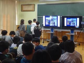 ・今回の講話は,教頭先生が行いました。教頭先生は,震災当時,大崎市の学校にお勤めだったので,校庭にいた子供たちを守りながら,校舎が崩れるんではないかと心配になったこと,道路が所々陥没し,自宅に戻るのに時間が掛かったこと,ラジオで沿岸部の津波の情報を聞き,心がとても苦しくなったことなど,当時の写真を交えながら,自身の体験談をお話しくださいました。子供たちは,いつも以上に真剣に聞いていました。