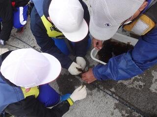 ・クレーンを使っての焼却炉へのゴミの投入や,空き缶を潰して塊にするところなど,子供たちは興味津々に見ていました。新しく建てられた最終処分場も見せていただきました。