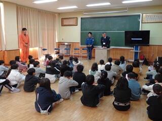 ・昨日、少年消防クラブの修了式を行いました。消防署の方のお話を聞いて、一年間の活動を振り返り、防火の大切さについて確認しました。