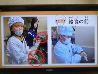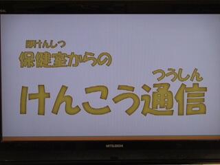 ・給食時間に、養護教諭が「健康通信」を放送しました。今回は、「上手な手洗い」でした。