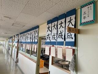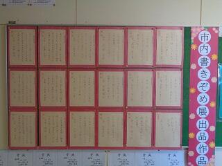 ・市書きぞめ展に出品した作品は、職員室前の廊下に展示してあります。どれも力作ぞろいで、子供たちの一生懸命さが伝わってきます。