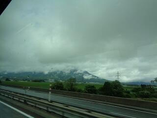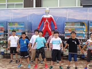 ・安達太良サービスエリアでは,ウルトラセブンと記念撮影をしました。磐梯山は,中腹から山頂まですっかりと雲に覆われていました。