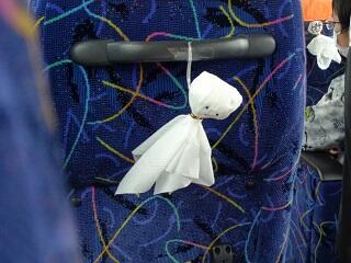 会津若松の天候が心配されるので,バスの中では,ガイドさんからてるてる坊主づくりを勧められ,みんなで作りました。この思いが天に通じることを願うばかりです。