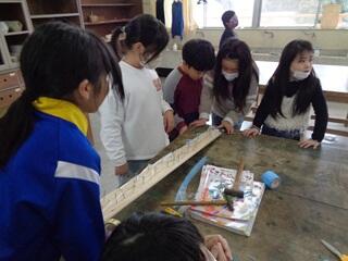 ・3年生が図工「トントンくぎ打ち コンコンビー玉」という学習で、ビー玉コースターを作りました。