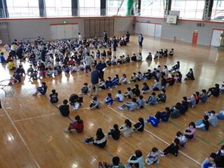 ・来週の月曜日に、一斉下校訓練を行います。地区ごとの集団で下校となるため、今日は、地区ごとに集合整列、人員確認等の事前指導を行いました。