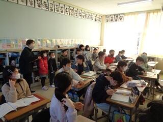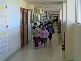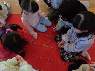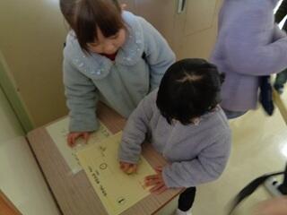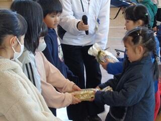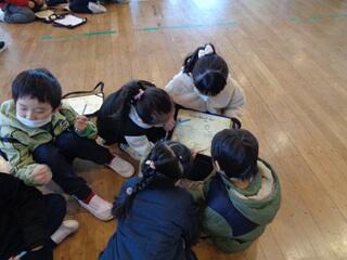 ・先日、1年生の子供たちが学区内にある保育所の子供たちと交流会を行いました。今年の4月に小学校へ入学する年長の子供たちを学校に招待して交流会を行いました。