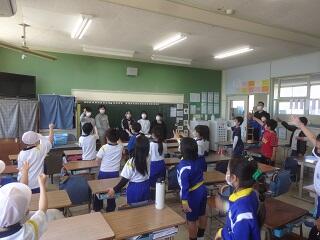 ・授業は,専科の先生とALTで行っています。3年生では,自分の気持ちを表す表現の学習を行っていました。みんな楽しそうに活動していました。専科の先生の配置は,学校にとってとてもありがたいことです。