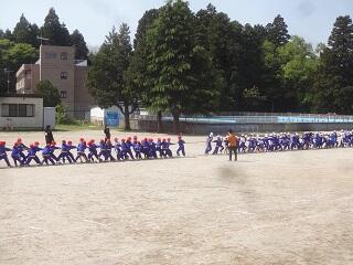 ・子供たちにとっては,見るのもするのも初めての競技です。指揮の先生の合図に合わせながら,テキパキ動いたり,力一杯綱を引いたりしていました。元気のよい声,精一杯な姿が運動会に戻ってきたことを実感しています。