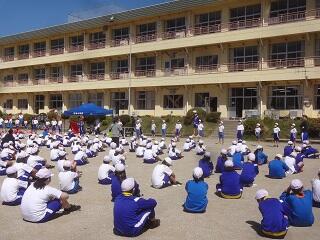 ・土曜日実施の運動会に向けて,総練習を行いました。雲一つない晴天だったため,途中2度ほど教室で休憩を取りながら行いました。