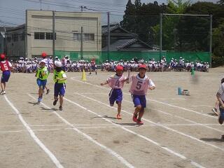 ・プログラムの前半は,各学年の徒競走です。一生懸命に校庭を走る子供たちに,会場の皆様から温かい拍手と声援をいただきました。途中,転んでしまった子もいましたが,誰一人として走るのを諦めることなく,最後まで走りきる姿がとても立派でした。