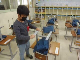 ・校舎内では,運動会で使用する準備物の確認したり,椅子の脚が汚れないようにガムテープを貼ったりと,室内で進められる準備を行いました。