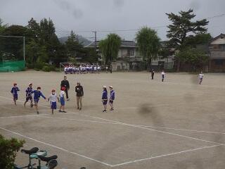 ・初めての全体練習だったので,一つ一つ確認しながら行いました。子供たちは,先生方の話をしっかりと聞きながら取り組んでいました。
