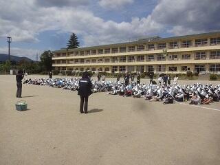 ・初めての訓練だったこともあり,いつもより避難中のおしゃべりが多かったです。校長先生からは,「先生方の話をきちんと聞くことが,自分の命を守ることにつながりますので,静かに避難するようにしましょう。」というお話がありました。