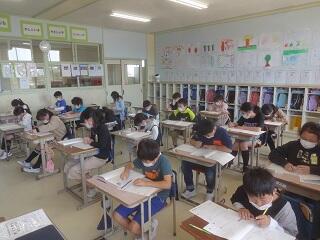 ・今日の2・3校時目に,標準学力調査を行いました。2年生以上の子供たちが,国語と算数の問題に挑戦しました。
