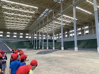 ・クレーンを使っての焼却炉へのゴミの投入や,空き缶を潰して塊にするところなど,子供たちは興味津々に見ていました。新しく建てられた最終処分場も見せていただきました。