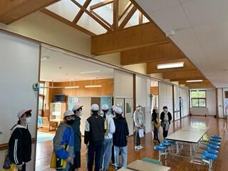 ・旧水梨小学校は、平成30年度をもって閉校となり、本校と統合となりましたが、校舎は平成8年度に新築され、今でも大変立派です。今は、福祉施設として活用されていますが、施設の方の御厚意で、中を見学させていただきました。