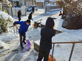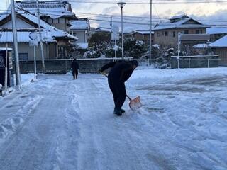・昨日の寒波で,学校の周りにもたくさんの雪が積もりました。今朝は,職員がいつもより早めに出勤し,子供たちの通学路や,送迎バスの駐車場等の雪かきを行いました。