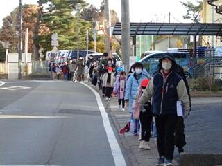 ・寒風吹きすさぶ中での訓練でしたが,6年生を中心に,交通ルールを守りながら安全に下校していました。子供たちの命を守るための大切な訓練ですので,今後も続けていきます。