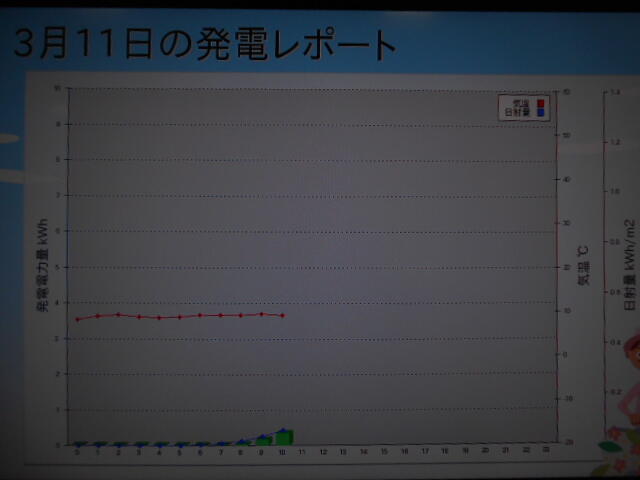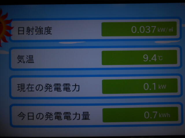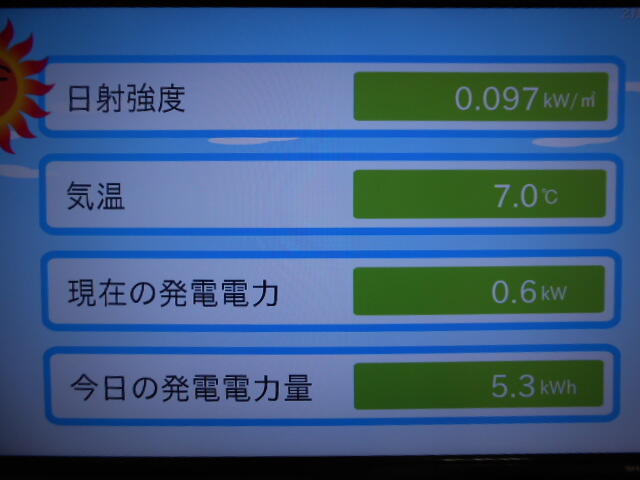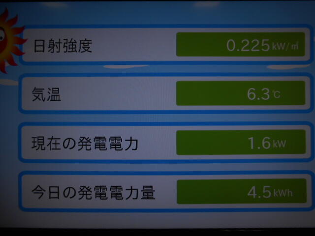 午前中、少し太陽が顔を出しましたが、今は曇っています。パネルが雪で覆われているため、発電はほとんどありません。