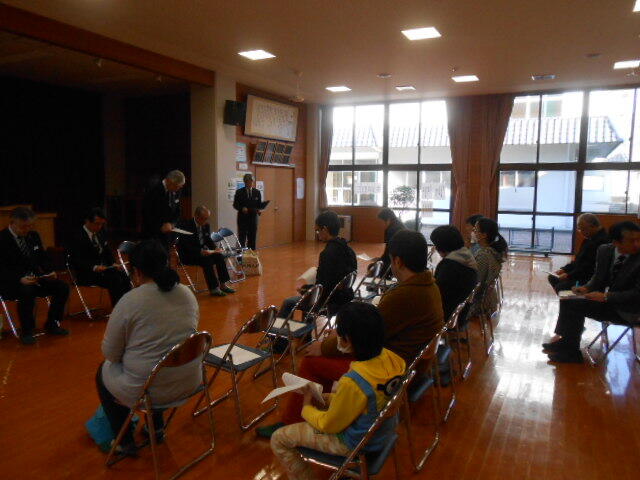 地区から多くの皆様がお出でになり、市義務教育環境整備計画について話合いがなされました。